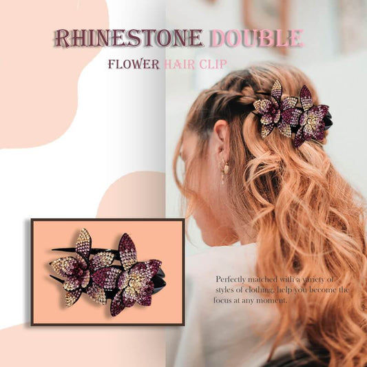 alwaysdwellTM - Rhinestone Double Flower Hair Clip