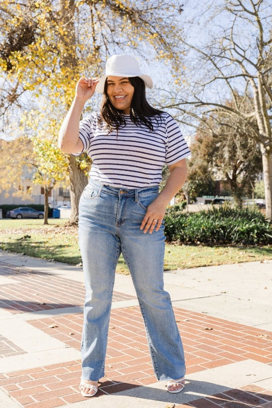 alwaysdwell™-Blue Mid-Rise Tummy Tuck Bootcut Jeans(Buy 2 Free Shipping)
