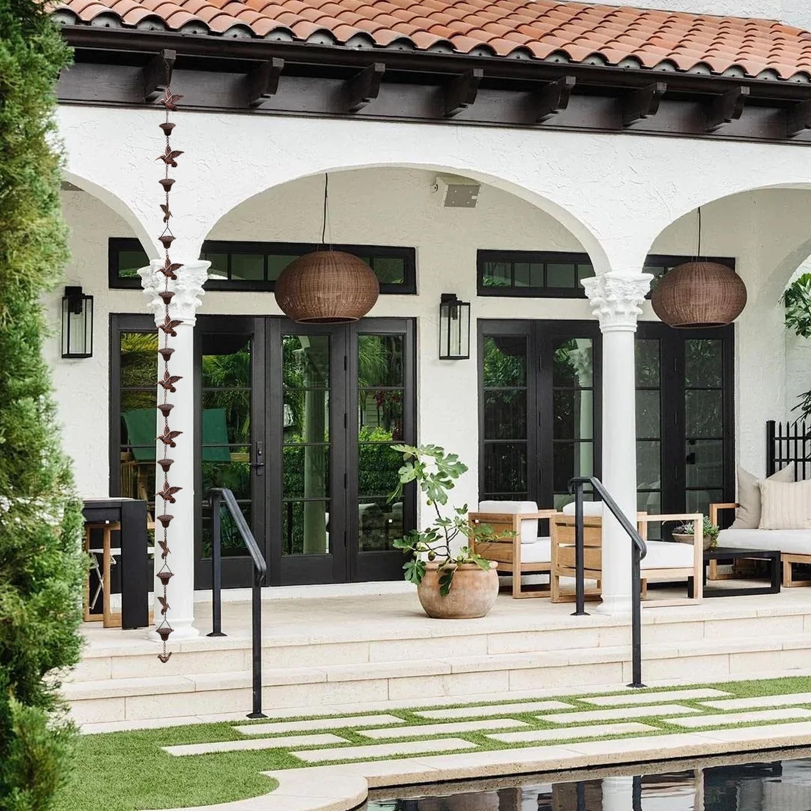 🕊️ PERFECT GIFT - The outdoor rain chain is suitable for standard single-story houses and is also a very exquisite decoration for your garden, courtyard, villa, patio, etc. This would make a great gift for yourself or friends and family at a housewarming party, birthday or holiday.