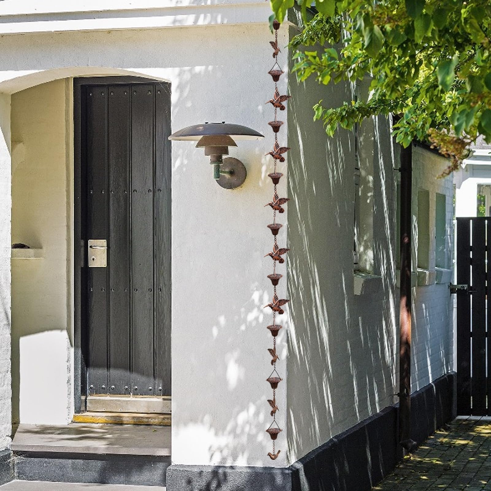 🕊️Hummingbird Rain Chain - Gutter rain chain is made of high-quality iron and consists of cups and hummingbirds connected vertically, which is beautiful and practical. This rainwater chain combines outdoor decoration with practical drainage and can be used as an optional alternative to traditional rain gutter systems.