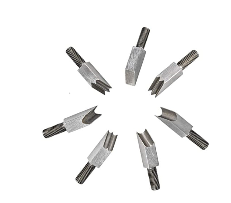 The Quick Edge Trimming Chamfer is a device used for knocking down sharp corners and creating a chamfer or radius profile. (1 round cutter, double sharp cutter, double round cutter, 1/8 round cutter, 3/16 round cutter, 1/4 round Blade, 45°flat-angle blade) radius profiles.