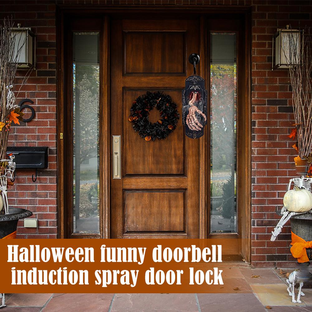 The spooky Halloween doorbell is ingeniously designed as an induction door lock. When someone approaches the door, the sensor triggers a thick fog or smoke spray, creating a mysterious and eerie atmosphere. This surprising and fun feature adds an element of excitement and anticipation for visitors.